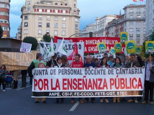 Cerca de medio millar de personas han secundado la manifestación convocada este jueves por la Junta de Personal Docente para "decir al Gobierno de Cantabria y al central, presente y futuro", que "no se va a consentir" un recorte en servicios esenciales y derechos fundamentales como es la Educación